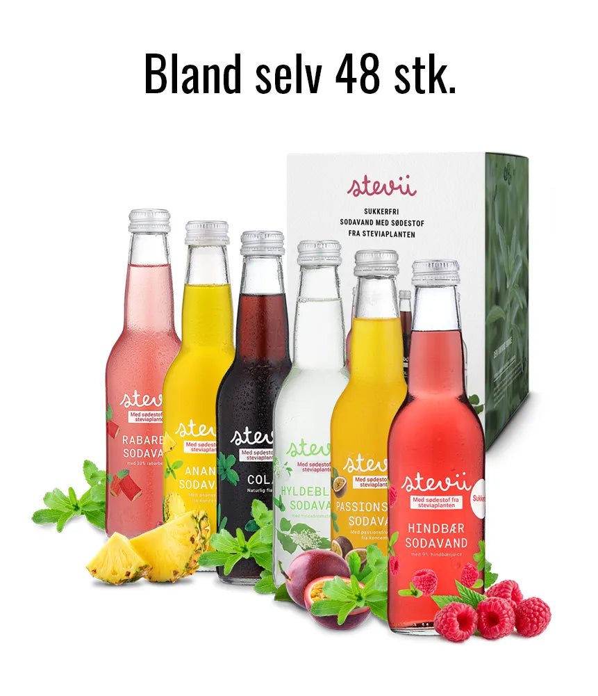 Her kan du blande 48 sodavand. Vælg frit mellem nedenstående varianter.