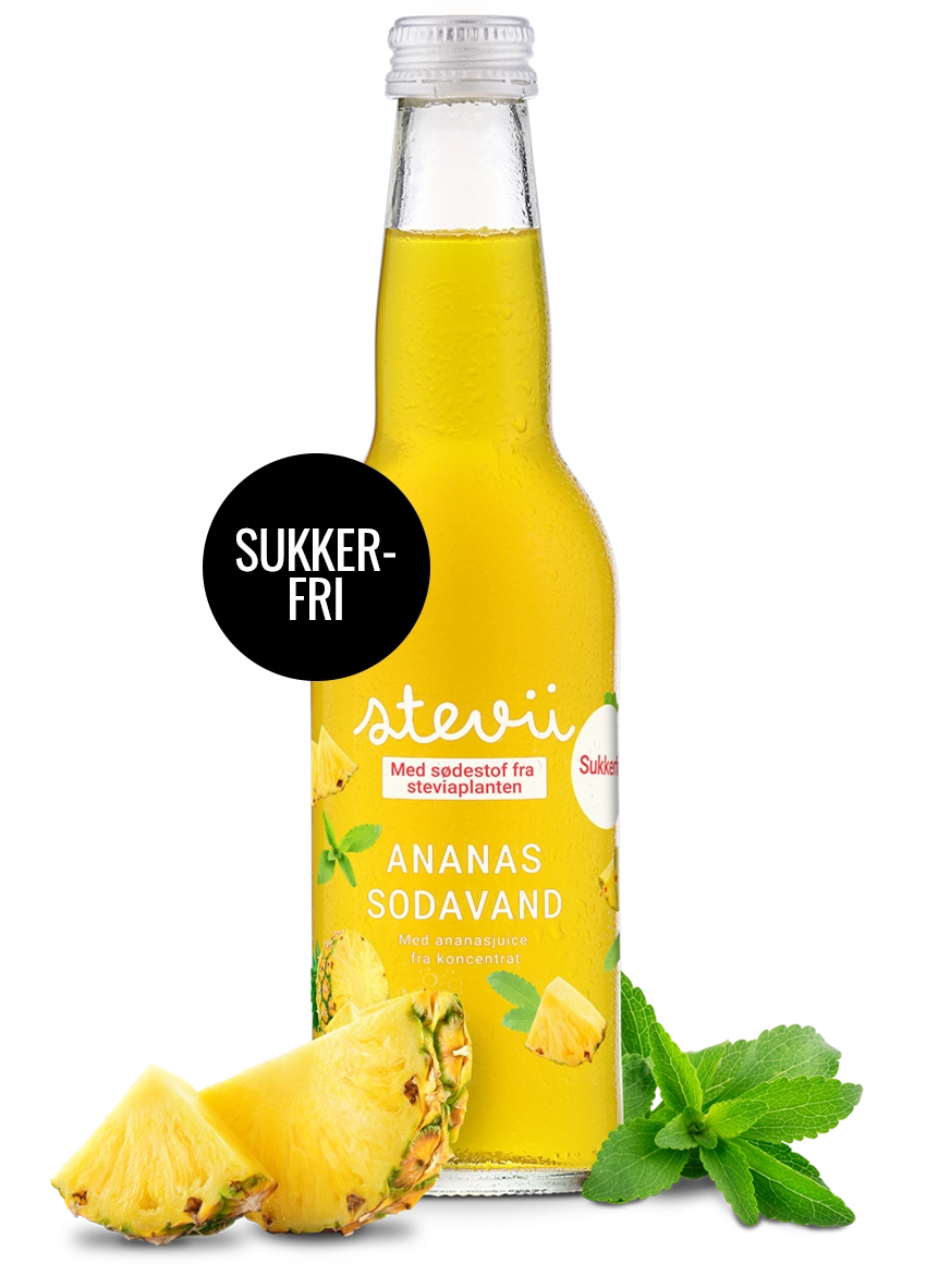 Kildevand tilsat kulsyre, 4 % ananasjuice fra koncentrat, naturlige aromaer, naturlig ananasaroma, farve (blandede carotener), antioxidant (ascorbinsyre), surhedsregulerende middel (citronsyre), sødestof (enzymatisk fremstillede steviolglycosider.
