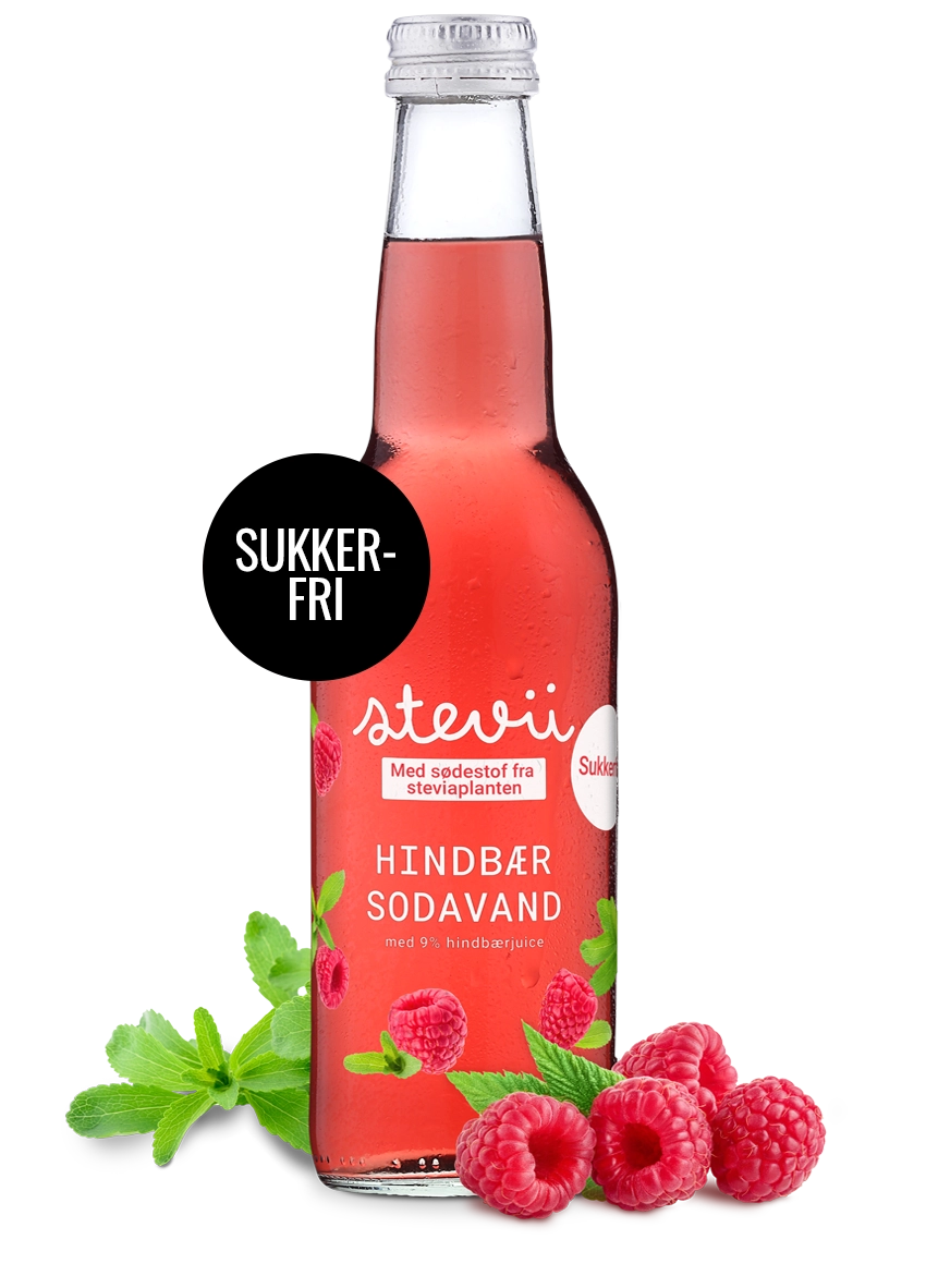 Kildevand tilsat kulsyre, 9 % hindbær juice, naturlige aromaer, naturlig hindbæraroma, antioxidant (ascorbinsyre), surhedsregulerende middel (citronsyre), sødestof (enzymatisk fremstillede steviolglycosider).